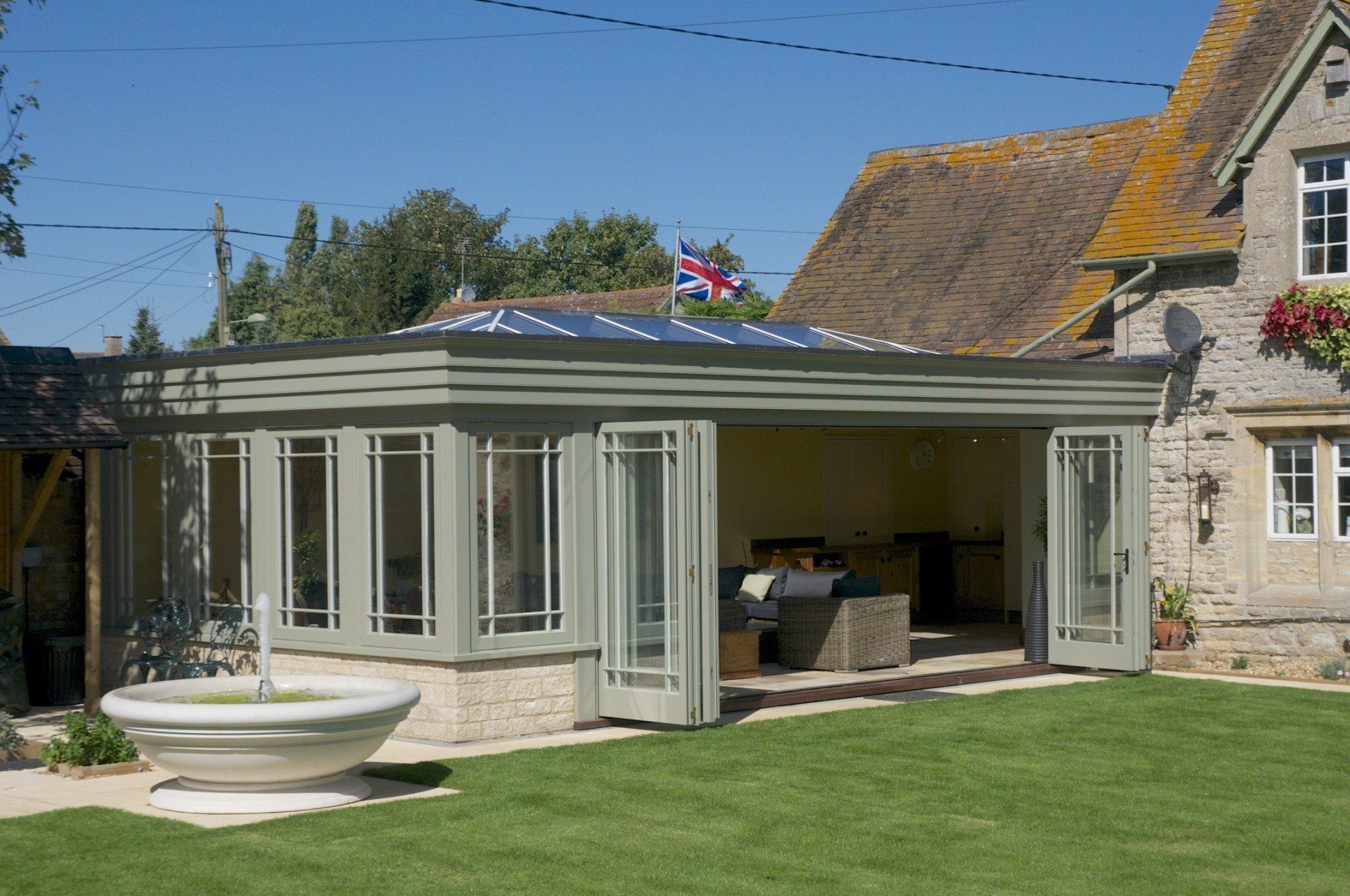 An orangery creates a family room for all seasons. A glazed roof adds more light and ventilation as well as giving a traditional architectural look to the new structure. With bi-folding doors, our buildings open to the garden in the summer for the ultimate alfresco living experience. With the more structured feel of plastered walls and ceiling you have a room that can be used all year round.